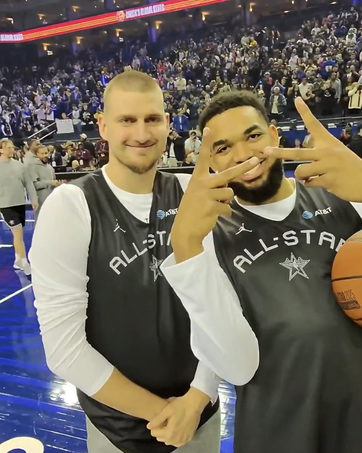 可愛(ài)捏!約基奇與唐斯在全明星現(xiàn)場(chǎng)合影 唐斯剪刀手&約老師姨母笑