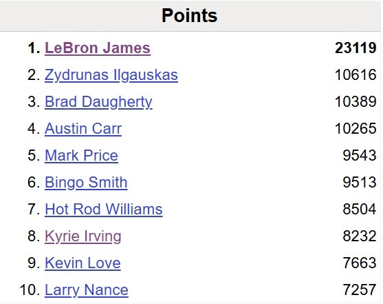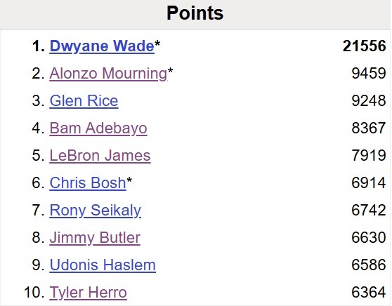(注:詹姆斯在熱火得分排名第五、上圖錯誤)
