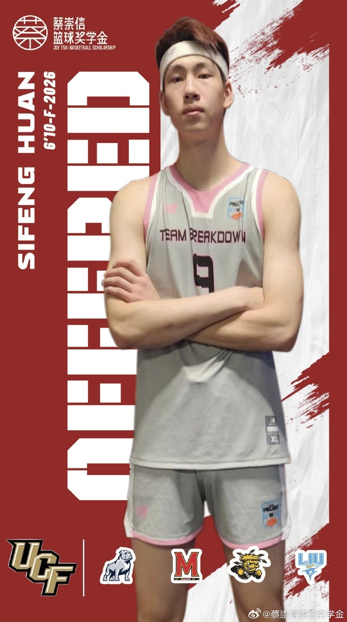 郇斯楓出生于2007年5月,身高208cm,2022年他被蔡崇信籃球獎學(xué)金項(xiàng)目選中,赴美留學(xué)。值得一提的是,他和同樣赴美留學(xué)的郇斯楠是親兄弟。
