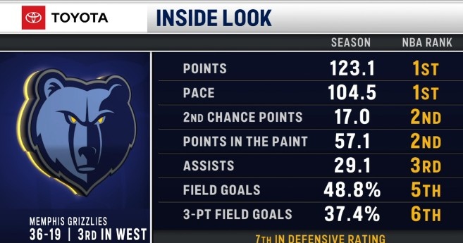 賽前轉(zhuǎn)播方曬出一組灰熊本賽季的場均數(shù)據(jù):