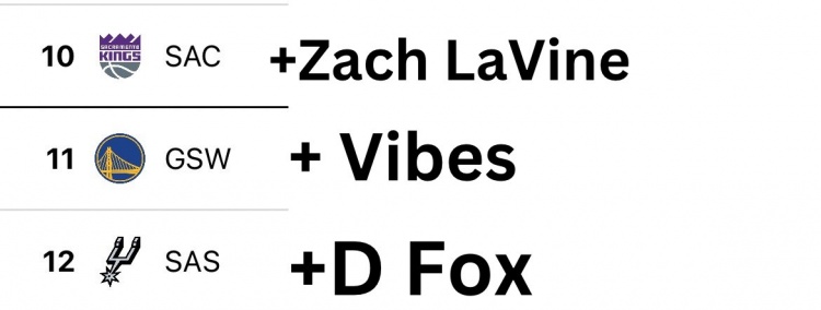 在曬出的圖片中,排西部第10的國王得到拉文,第12的馬刺得到福克斯,而第11的勇士則只得到了空氣(意指精神勝利法)。