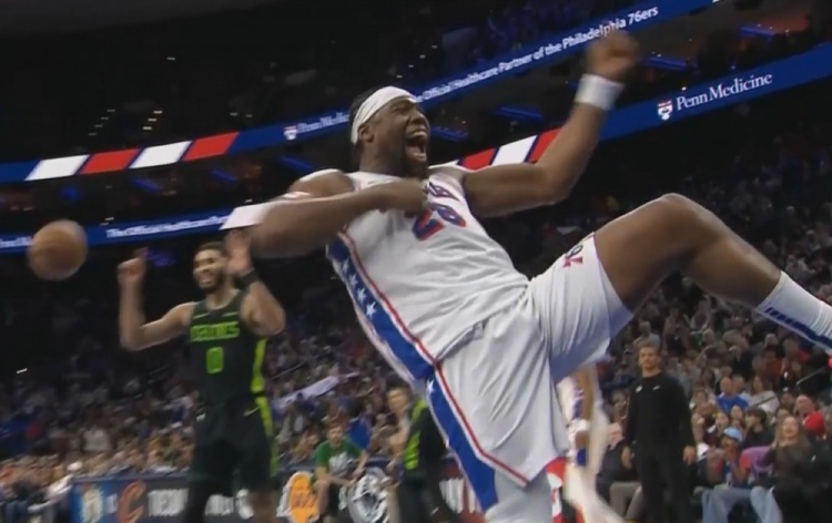暴力美學!亞布塞萊順下接球單臂隔扣懷特 之后瘋狂錘胸慶祝