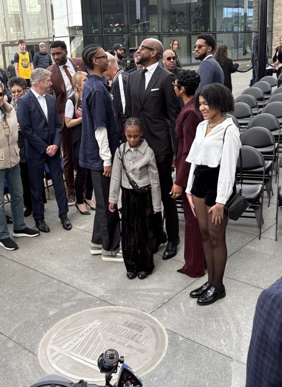 吉姆、喬,以及在場的各位,特別是安德烈的家人,還有曾經(jīng)獲得獎章的勇士傳奇球員們: