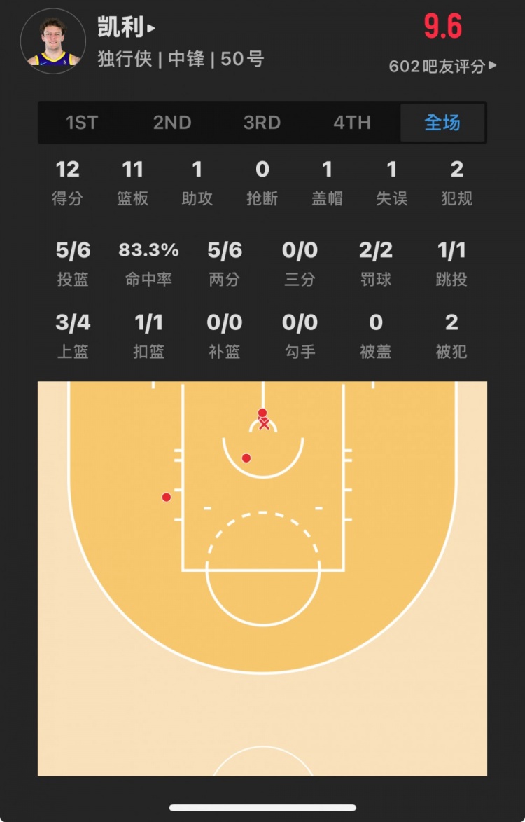獨(dú)行俠落選秀 凱勒-凱利 登場(chǎng)34.1分鐘
