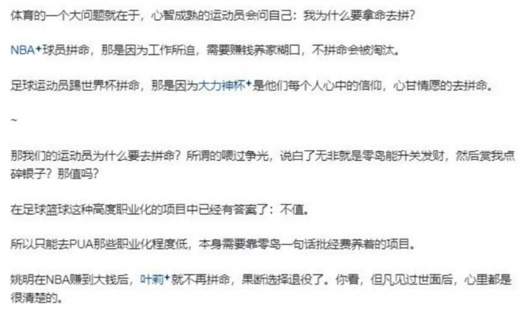 其次,就這個問題相關(guān)所有來自足球迷、NBA球迷的“反對集訓(xùn)”的觀點。我一律表示反對。
