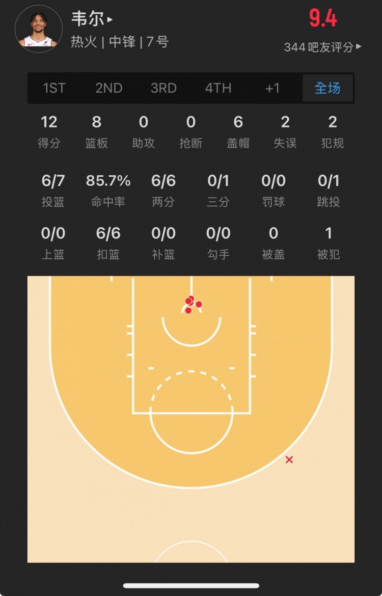 熱火15號(hào)秀 克雷爾-韋爾 登場(chǎng)29.3分鐘