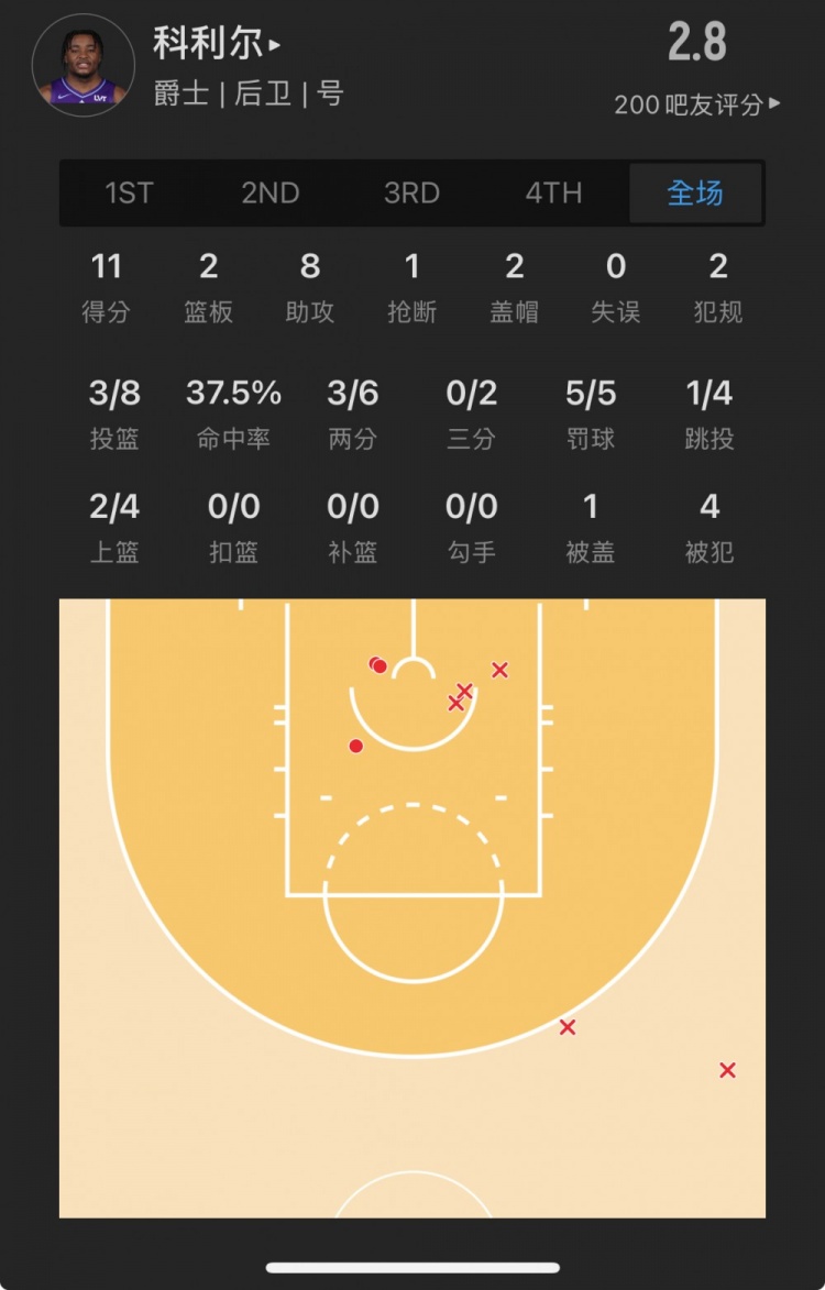 爵士29號(hào)秀 以賽亞-科利爾 登場(chǎng)28.9分鐘