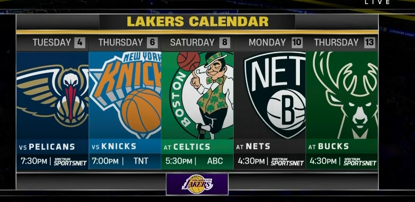 2主3客!湖人未來5場對手:鵜鶘/尼克斯/凱爾特人/籃網/雄鹿