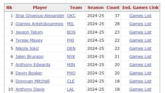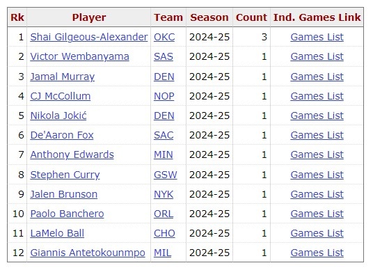 SGA目前59場20+,聯(lián)盟第一!