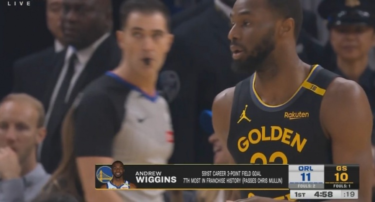 維金斯命中1記三分。據(jù)統(tǒng)計(jì),這是維金斯加盟勇士以來(lái)命中的第591記三分,超穆林位列隊(duì)史第7。