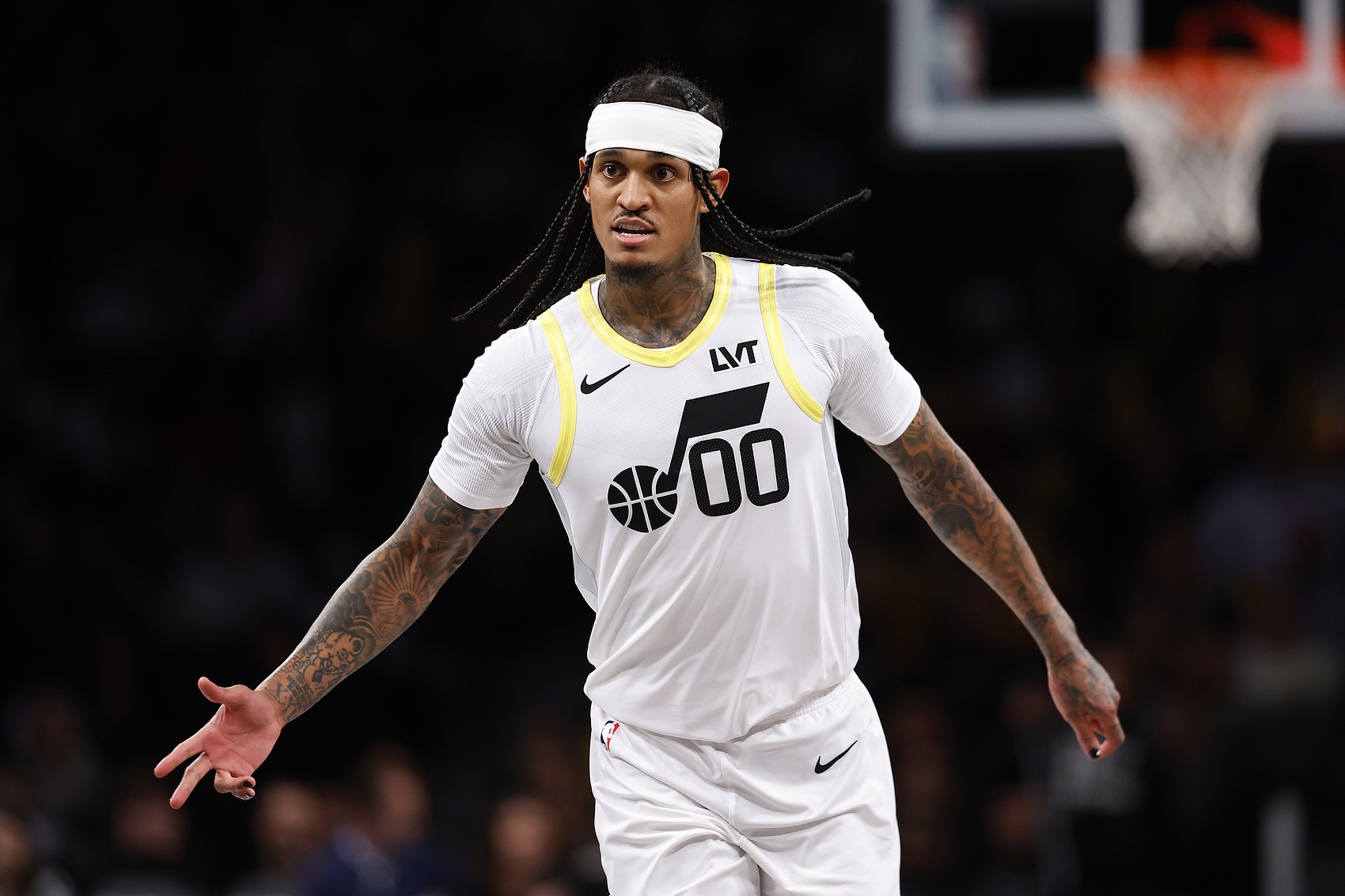 上半場,爵士球員克拉克森表現(xiàn)出色,進攻端狀態(tài)火熱拿到兩隊最高分,在17分半的時間里,投籃11中7,三分球5中3,拿到17分1籃板2助攻1搶斷的數(shù)據(jù)。