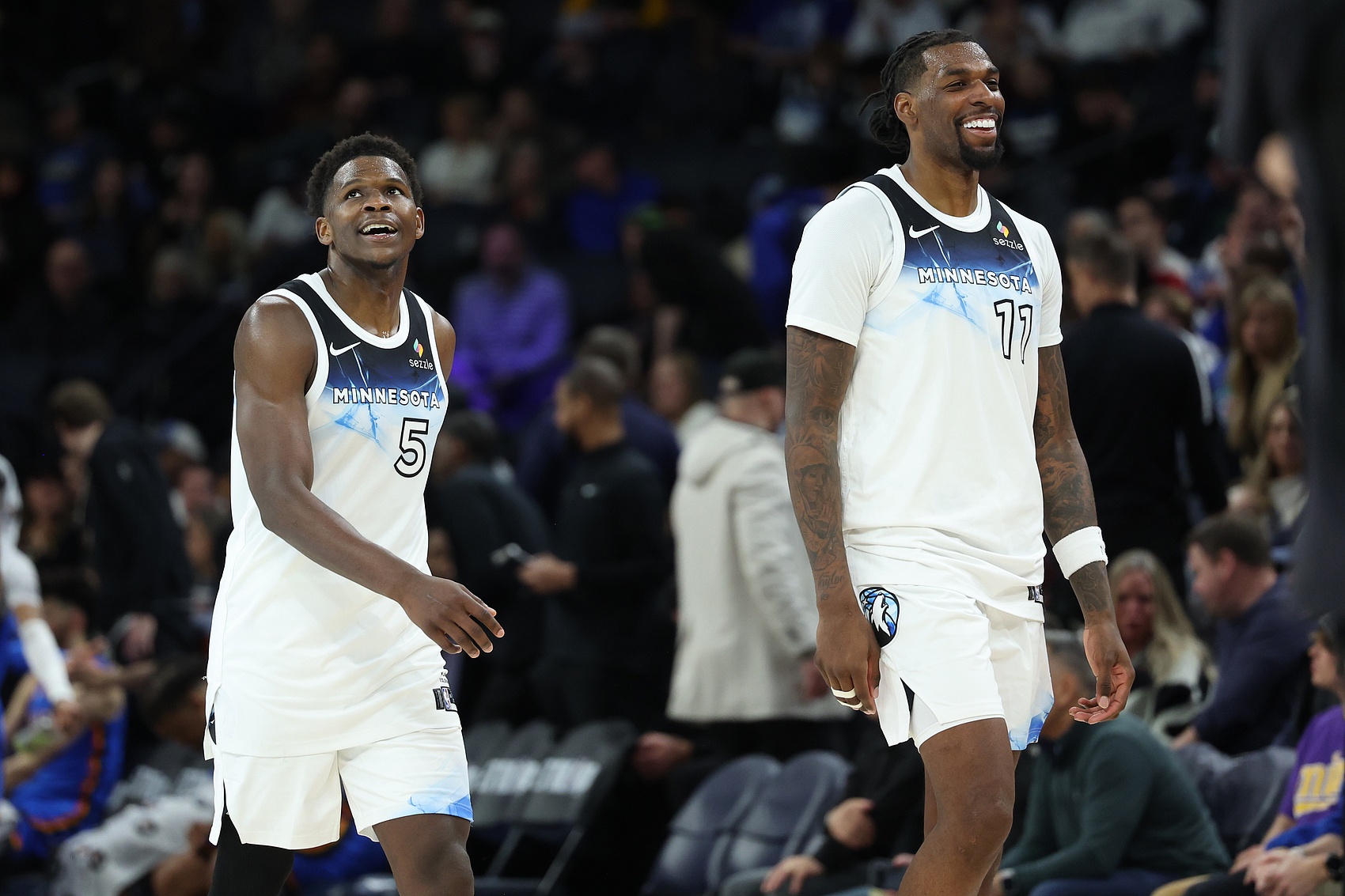 此役,森林狼得分分布非常平均,他們共有7人得分上雙,但無(wú)人20+。