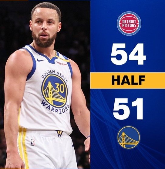3月9日訊 NBA常規(guī)賽今天繼續(xù)進(jìn)行,勇士在主場迎戰(zhàn)活塞。半場結(jié)束時(shí),勇士51比54落后。