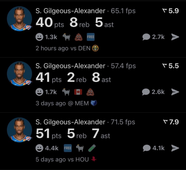 這樣以來(lái),亞歷山大已經(jīng)連續(xù)3場(chǎng)比賽砍下40+,雷霆隊(duì)史繼威少后第二人!