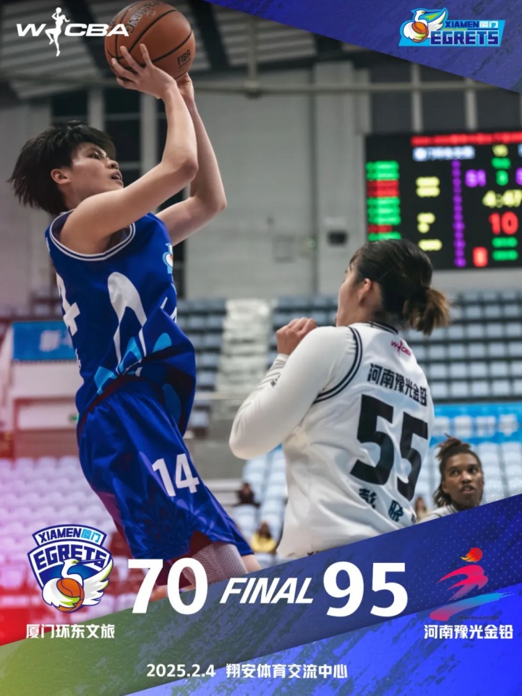 末節(jié)決戰(zhàn),黃柔甄接連突破內(nèi)線取分,廈門女籃上來將分差縮小到4分打停河南。暫?;貋恚瑢O麗翻身中投幫助河南女籃緊急止血,加儂接連攻擊內(nèi)線后陳薇安三分命中穩(wěn)住雙位數(shù)領(lǐng)先。隨后廈門女籃進(jìn)攻斷電,7分多鐘僅得1分,河南女籃抓住機(jī)會(huì)拉開20分以上領(lǐng)先,最終廈門環(huán)東文旅70-95不敵河南豫光金鉛。