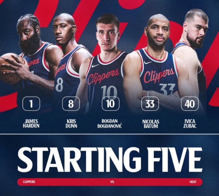 快船首發(fā):哈登、鄧恩、博格丹-博格達諾維奇、巴圖姆、祖巴茨。