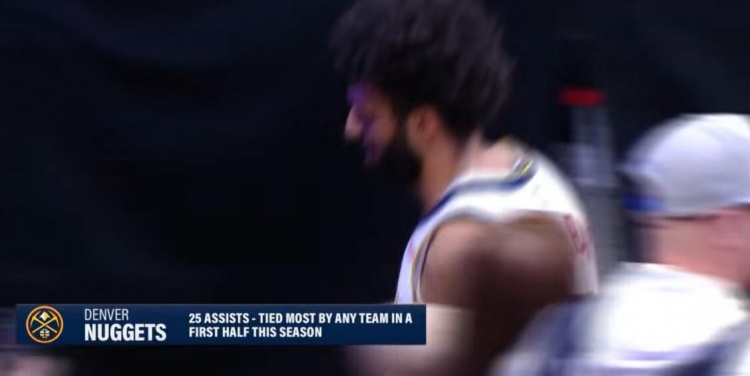 上半場,掘金全隊共有25次助攻,平了本賽季所有球隊半場助攻最多紀錄。