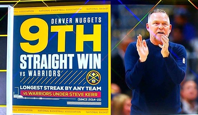 本場過后,勇士面對掘金已經(jīng)慘遭9連敗。