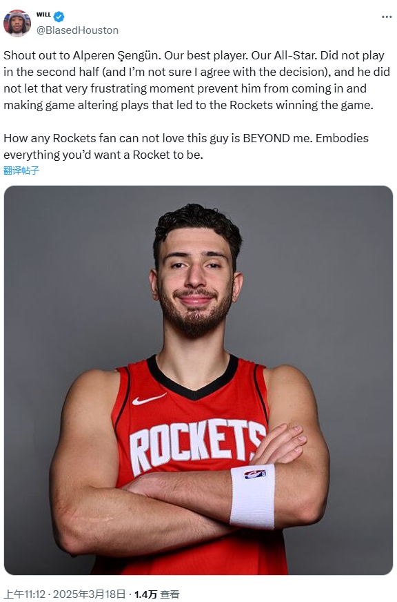 賽后,火箭的一位球迷評(píng)論道:“向申京致敬。他是我們最好的球員,我們的全明星。盡管下半場(chǎng)沒(méi)有上場(chǎng)(我對(duì)此決定并不完全贊同),但他并沒(méi)有讓這一令人沮喪的時(shí)刻影響自己,他在關(guān)鍵時(shí)刻挺身而出,為火箭贏得了比賽。任何火箭球迷如果不愛(ài)這個(gè)小伙子,那真是難以理解。他完美地展現(xiàn)了火箭球員應(yīng)有的所有品質(zhì)?!?/p>