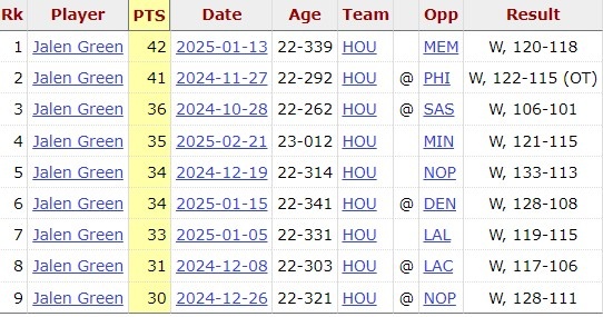 據(jù)統(tǒng)計(jì),這是杰倫-格林本賽季第10場(chǎng)30+,而這10場(chǎng)火箭全勝!