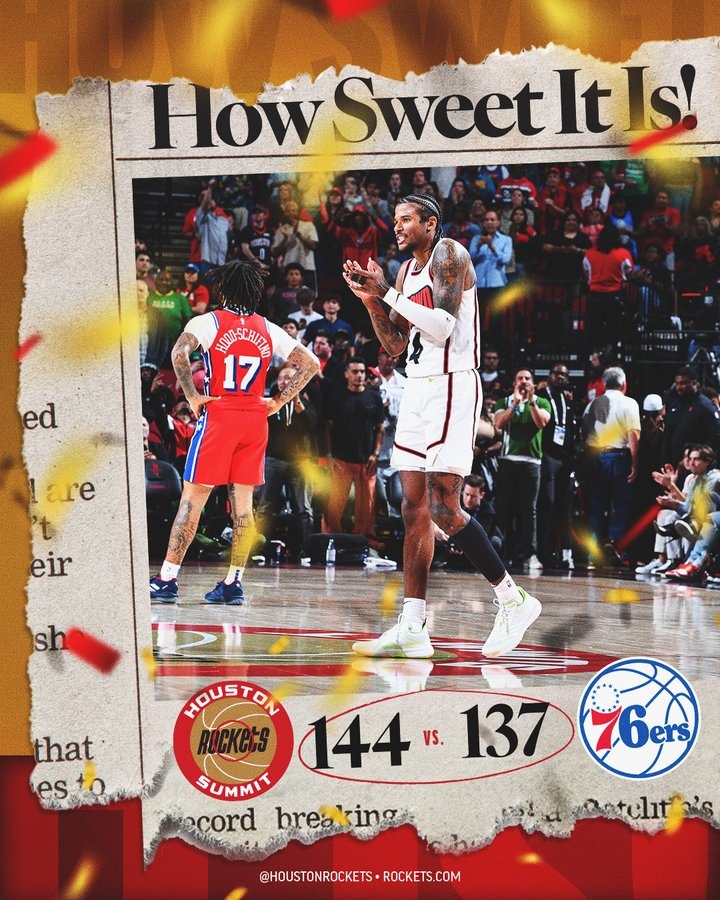 3月18日訊 NBA常規(guī)賽,火箭加時(shí)144-137險(xiǎn)勝76人。
