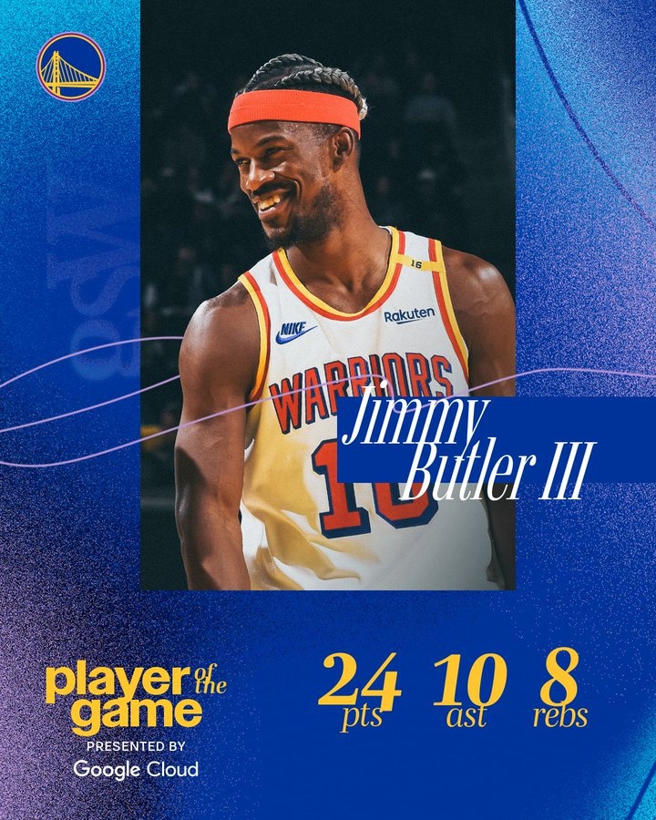 賽后,勇士官方評(píng)選出本場最佳球員,全面表現(xiàn)的巴特勒當(dāng)選。
