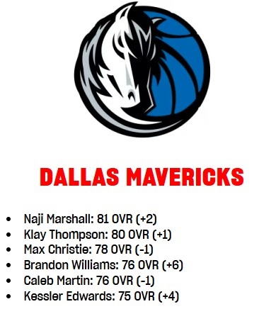 獨(dú)行俠球員2K能力值更新:克萊+1至80 馬紹爾+2克里斯蒂-1 一人+6