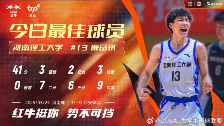 在河南理工大學(xué)97-93雙加時(shí)鏖戰(zhàn)力克西安體院的對決中,得分后衛(wèi)廉岳琪以41分3搶斷的炸裂數(shù)據(jù)化身"人間火器",用33%回合占有率下的62%真實(shí)命中率點(diǎn)燃全場。這位身披13號戰(zhàn)袍的得分狂人,在打滿50分鐘的極限消耗下,以10記三分冷箭洞穿對手防線鎖定勝局。盡管中距離9投僅2中,其三分線外10投6中的致命效率卻如手術(shù)刀般精準(zhǔn),更在搏命時(shí)刻12次站上罰球線砍下9分。技術(shù)統(tǒng)計(jì)表上的5次失誤與41分的極致反差,這位鐵血分衛(wèi)用最暴烈的得分本能證明:在雙加時(shí)的煉獄戰(zhàn)場,唯有偏執(zhí)的得分欲望才能劈開勝利之門——他的每一滴汗水都浸透著"寧可打鐵千百次,也要賭一顆子彈射穿黑夜"的鋒芒。