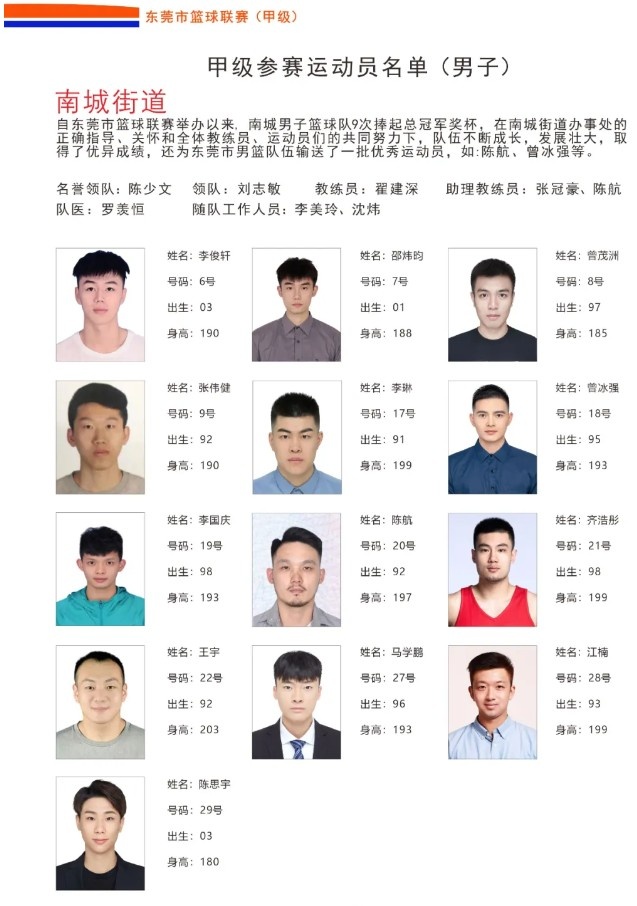 東莞市籃球聯(lián)賽將于4月7日正式開賽,詳細(xì)運(yùn)動(dòng)員名單如下: