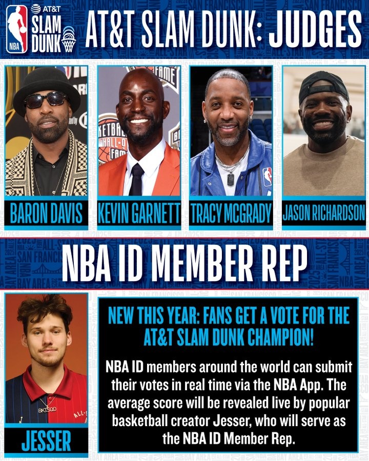 今年的扣籃大賽將是歷史首次,球迷可以直接參與到評分當(dāng)中。屆時球迷們可以通過加入NBA ID會員,在NBA官方APP上來對扣籃進(jìn)行實時打分,最終的得分結(jié)果由首屆NBA ID會員球迷代表、國外籃球博主Jesser在現(xiàn)場公布。