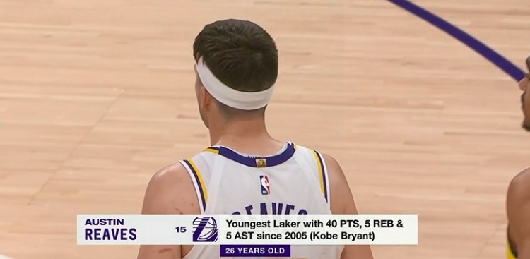 據(jù)統(tǒng)計(jì),里夫斯(26歲256天)成為自2005年的科比以來(lái),單場(chǎng)得到至少40分5籃板5助攻的最年輕湖人球員。