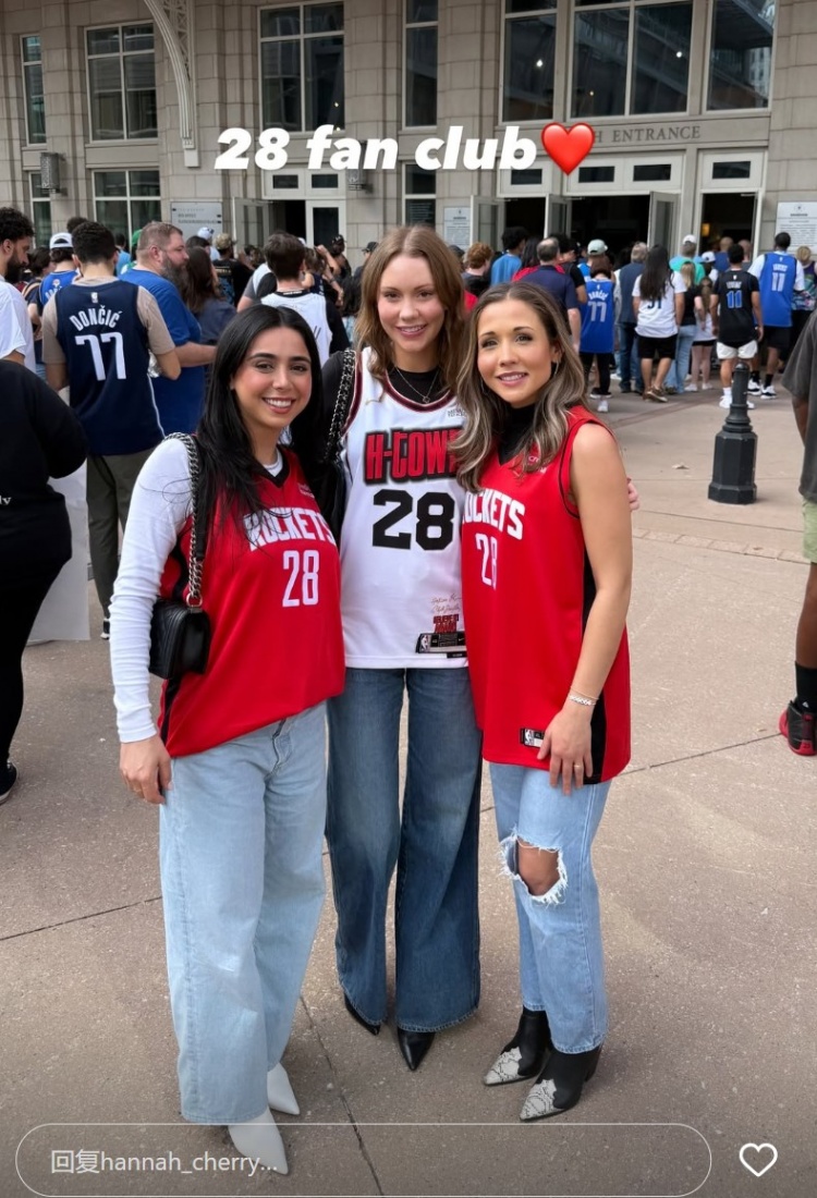 賽后,申京女友Hannah Cherry(中間)在INS曬出了她和兩位球迷的合照,并寫道:“28號的球迷。”
