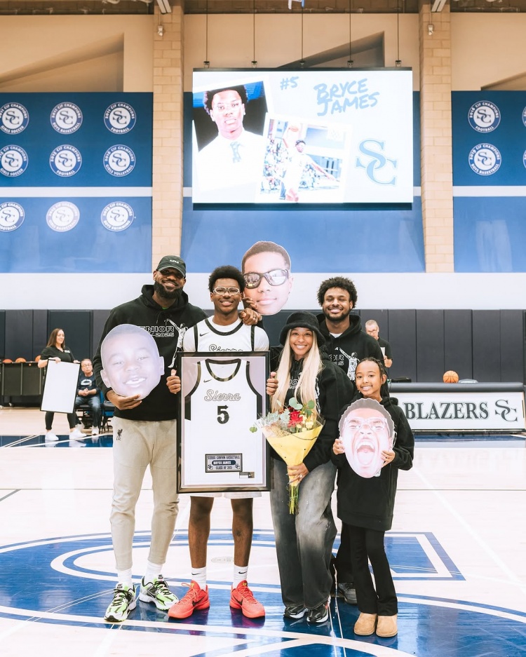 今天,詹姆斯攜全家出席了布萊斯的季后賽出征儀式。