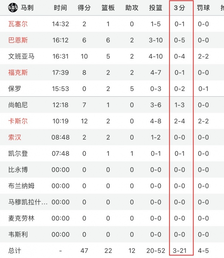 外線一點手感都沒得!馬刺半場三分21投僅3中&命中率僅14.3%