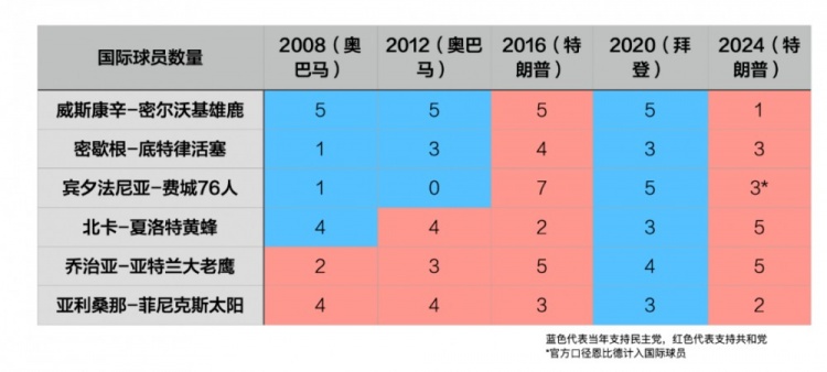 所以,球隊和地區(qū)之間缺少相關性也不奇怪。即便是那些今年重新把選票投給特朗普的地區(qū),有些還增加了國際球員的使用......