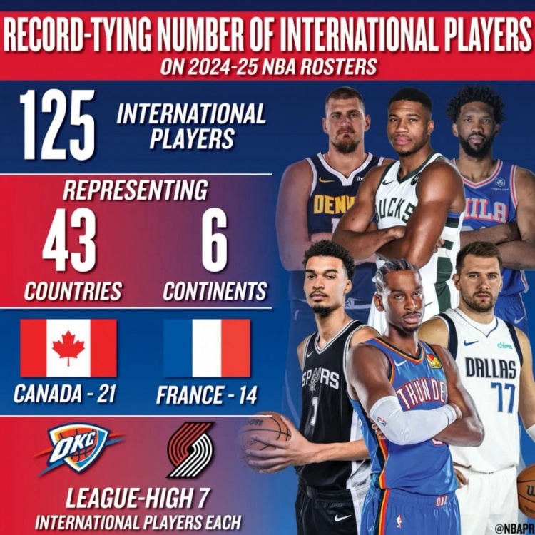 還有城市口號就是“Keep Portland Weird”的波特蘭,國際球員含量更是拉滿。原本在賽季揭幕時,他們和雷霆并列聯盟最多,可現在開拓者算上雙向合同已經有9名國際球員了......