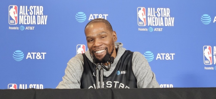 2月16日訊 今日是NBA全明星訓(xùn)練和媒體采訪日,杜蘭特接受了媒體采訪。