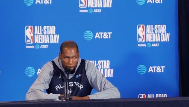 2月16日訊 今日是NBA全明星訓(xùn)練和媒體采訪日,杜蘭特接受了媒體采訪。