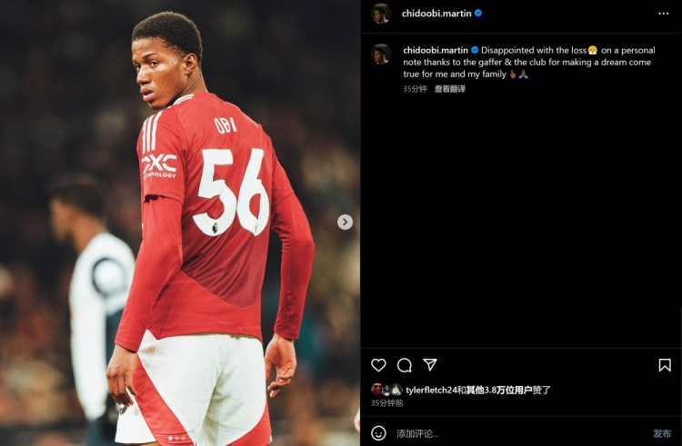 2月17日訊 英超本輪焦點(diǎn)戰(zhàn)中,曼聯(lián)0-1不敵熱刺。比賽尾聲階段,小將奧比-馬丁替補(bǔ)登場。賽后,他更新了社媒紀(jì)念自己的曼聯(lián)一線隊首秀。