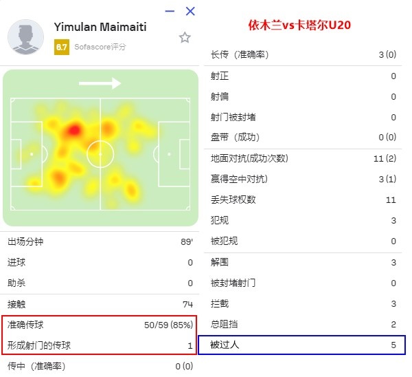 依木蘭最被球迷津津樂道的一幕,就是發(fā)生在跟卡塔爾U20的比賽里。當時依木蘭用一個布斯克茨式轉身完成變向,隨后送出直塞球給到隊友陳澤仕,帶來了隨后的反擊機會。