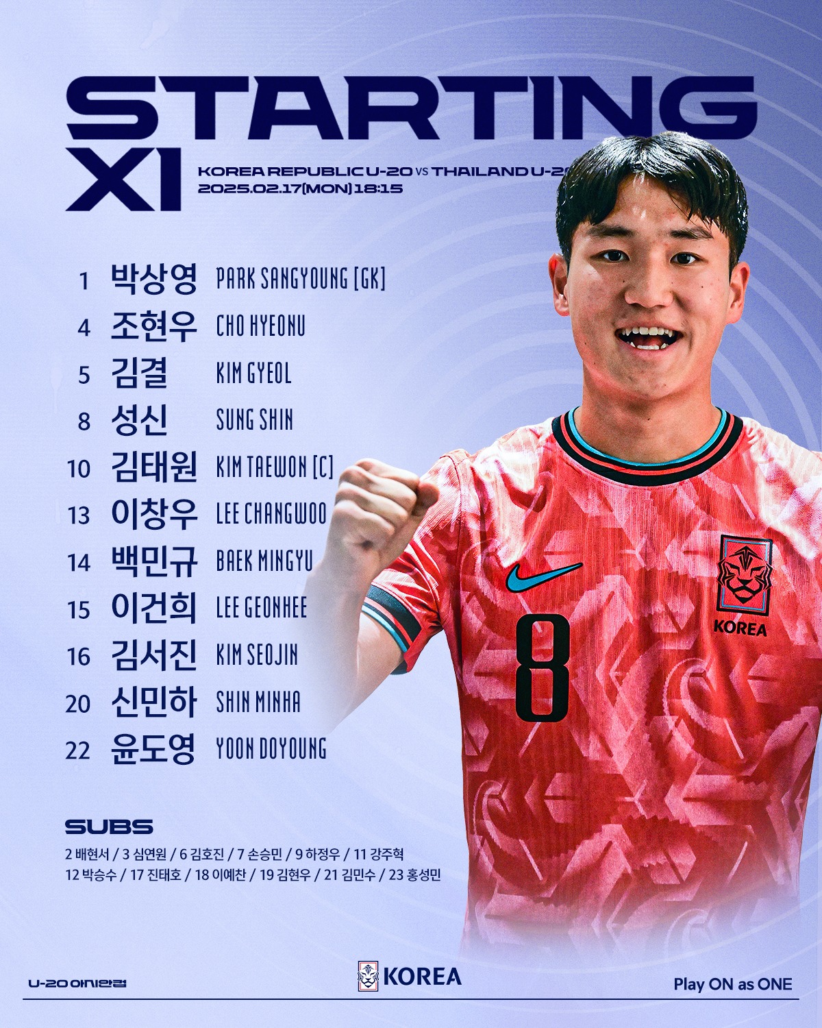 02月17日訊 北京時間17:15,韓國U20vs泰國U20首發(fā)出爐。