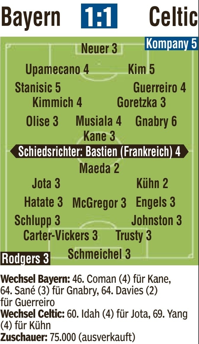 2月19日訊 歐冠淘汰賽附加賽次回合比賽,拜仁主場1-1絕平凱爾特人,兩回合總比分3-2晉級。德國媒體《圖片報(bào)》對兩隊(duì)球員的表現(xiàn)進(jìn)行了評分,戴維斯2分并列最高,格納布里6分全場最低,金玟哉、斯坦尼西奇5分。