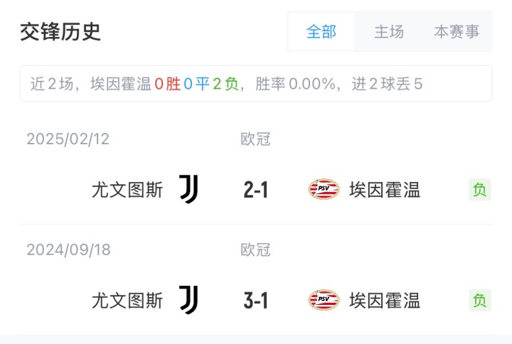 02月20日訊 在剛剛結(jié)束的歐冠淘汰賽附加賽中,尤文兩回合總比分3-4不敵埃因霍溫慘遭淘汰,巧合的是兩隊(duì)在之前的聯(lián)賽階段就有過(guò)交手,當(dāng)時(shí)尤文曾3-1輕取對(duì)手,附加賽的首回合尤文也以2-1取勝搶占先機(jī),但卻在最關(guān)鍵的第二回合敗北。