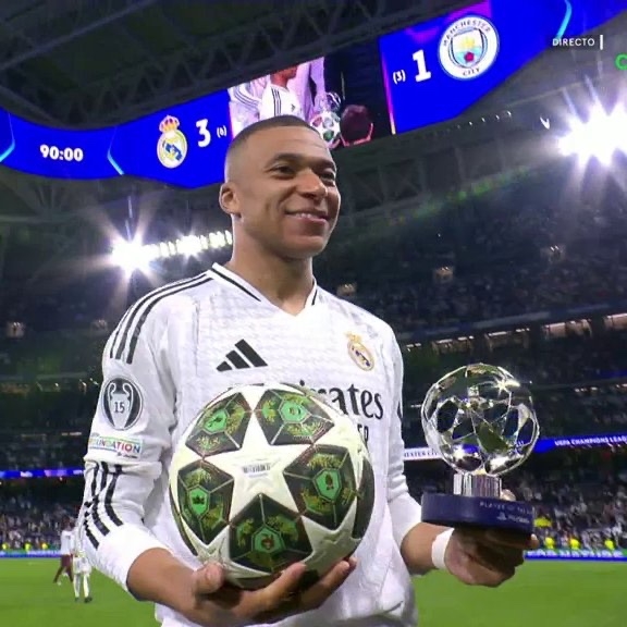 姆總霸氣外露!姆巴佩賽后手持全場(chǎng)最佳獎(jiǎng)杯+戴帽足球合影
