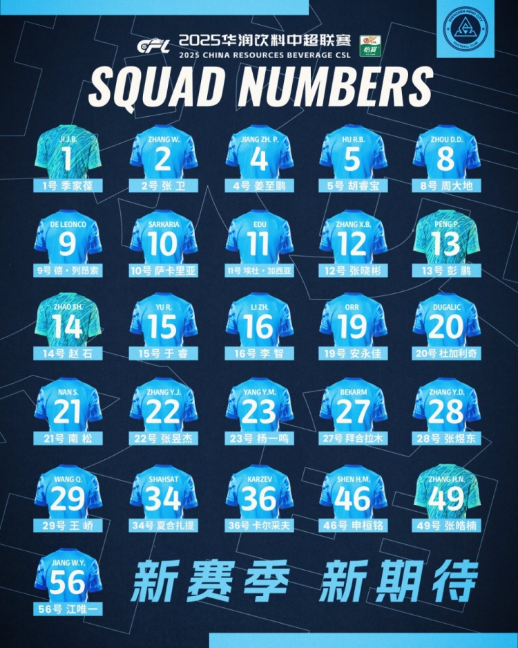 2月20日訊 深圳新鵬城俱樂部公布了2025賽季一線隊(duì)名單,共26名球員入選。