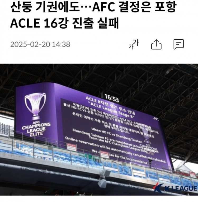 2月20日訊 據(jù)韓國媒體韓聯(lián)社報道,韓國足球職業(yè)聯(lián)盟表示,盡管已經(jīng)就浦項制鐵能否晉級亞冠精英聯(lián)賽16強的問題與亞足聯(lián)進行了討論,但只得到了“只能按照規(guī)定進行”的答復(fù)。