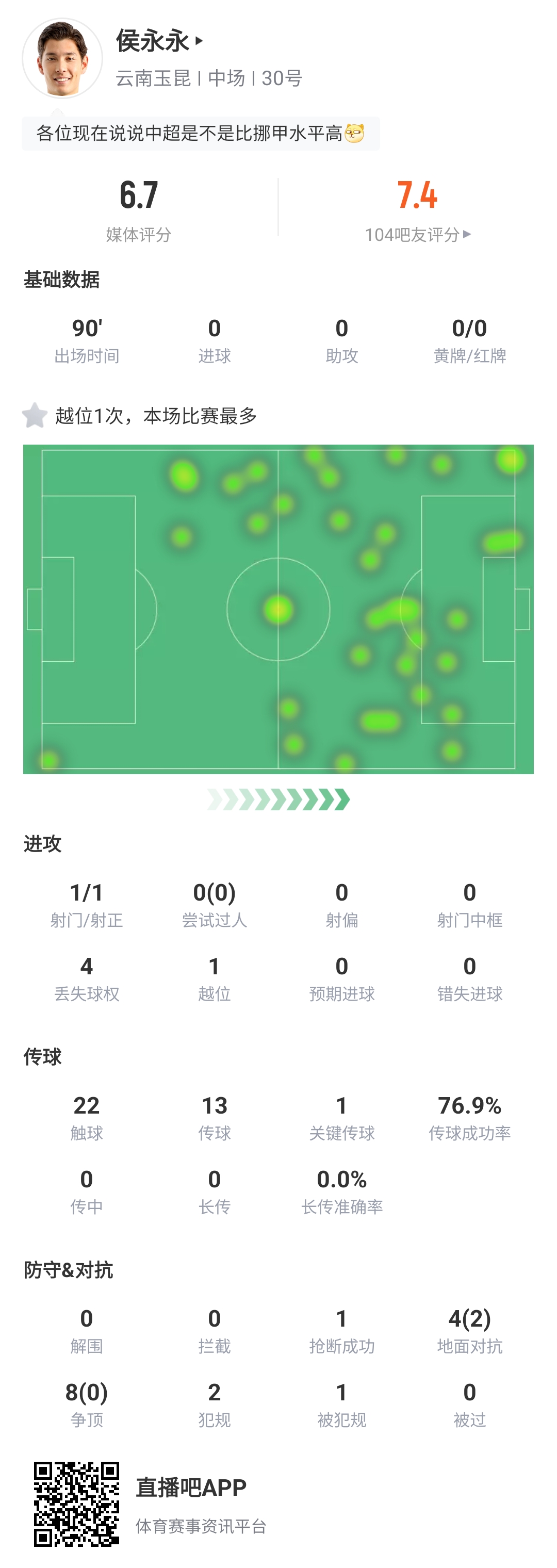 回歸首秀!歸化球員侯永永獲吧友7.4評分:現(xiàn)在中超是不是>挪甲