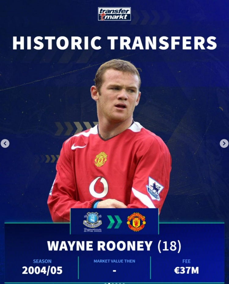 魯尼(埃弗頓→曼聯(lián))04/05賽季,轉(zhuǎn)會費3700萬歐