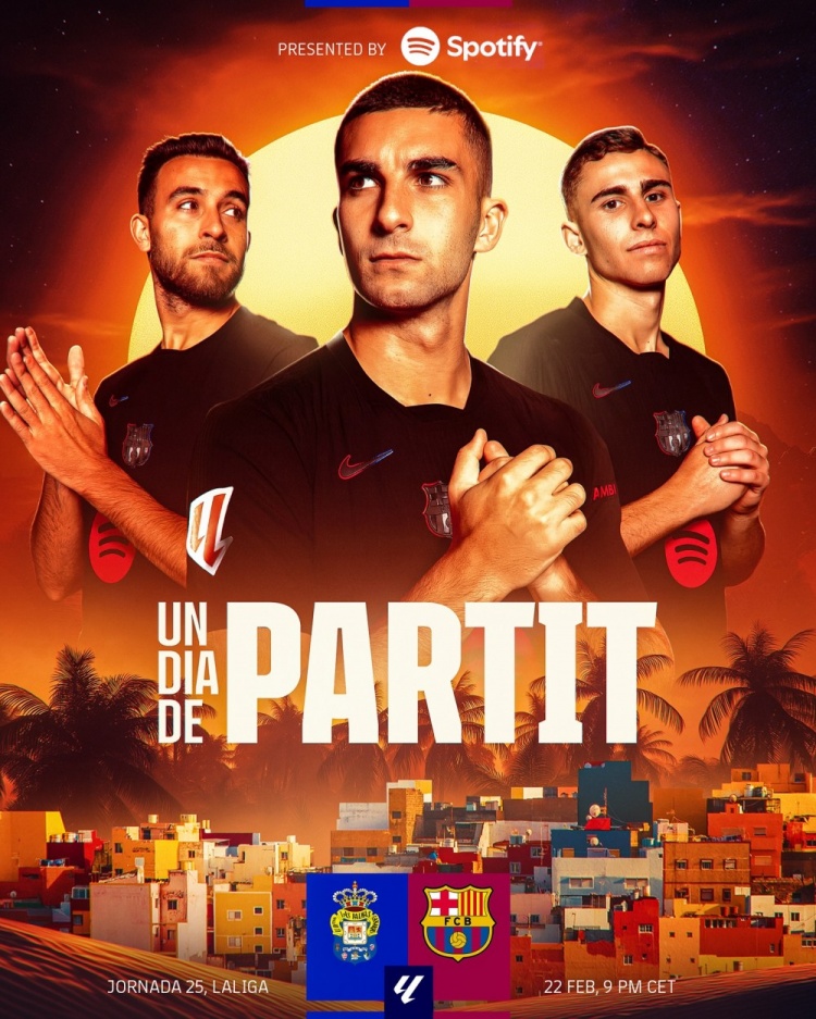 巴薩官方社媒發(fā)布了為此役制作的海報,費蘭-托雷斯占據(jù)C位,費爾明、埃里克-加西亞出鏡。