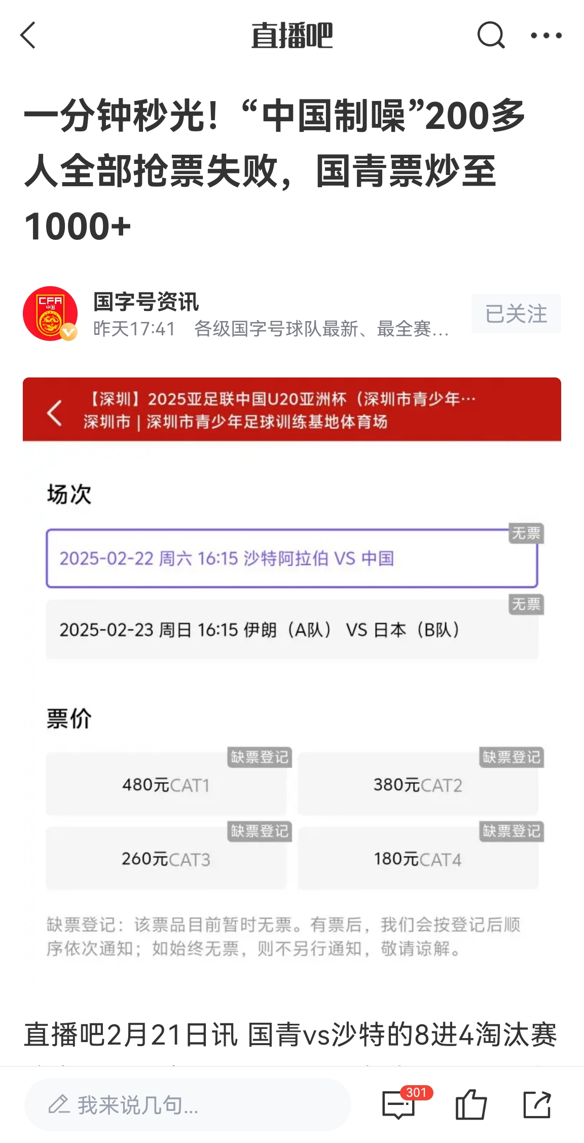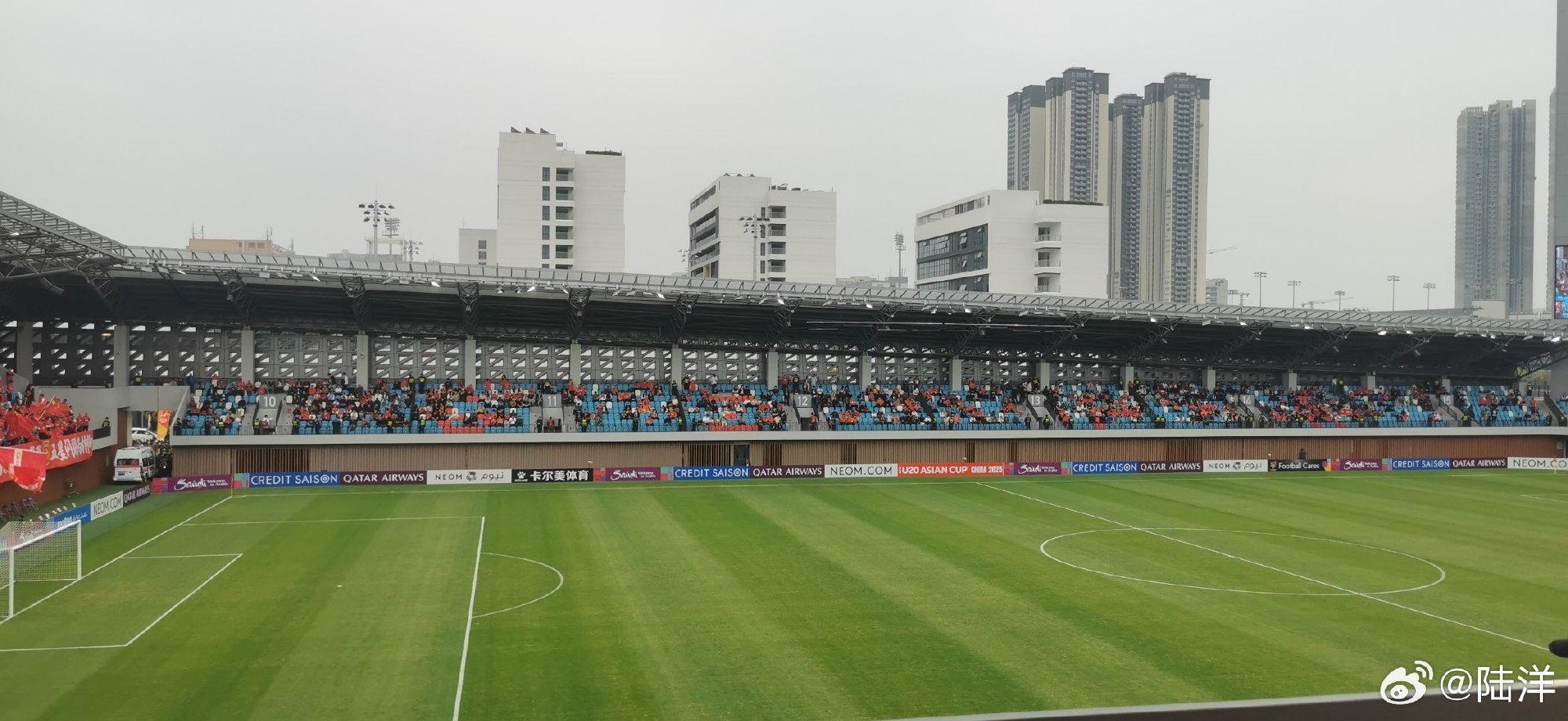 陸洋表示:離開賽15分鐘,對面看臺是這樣的,最近一個(gè)星期有兩位數(shù)的球迷在我這兒留言說搶不到票,所以替大家問一句“票哪兒去了??”